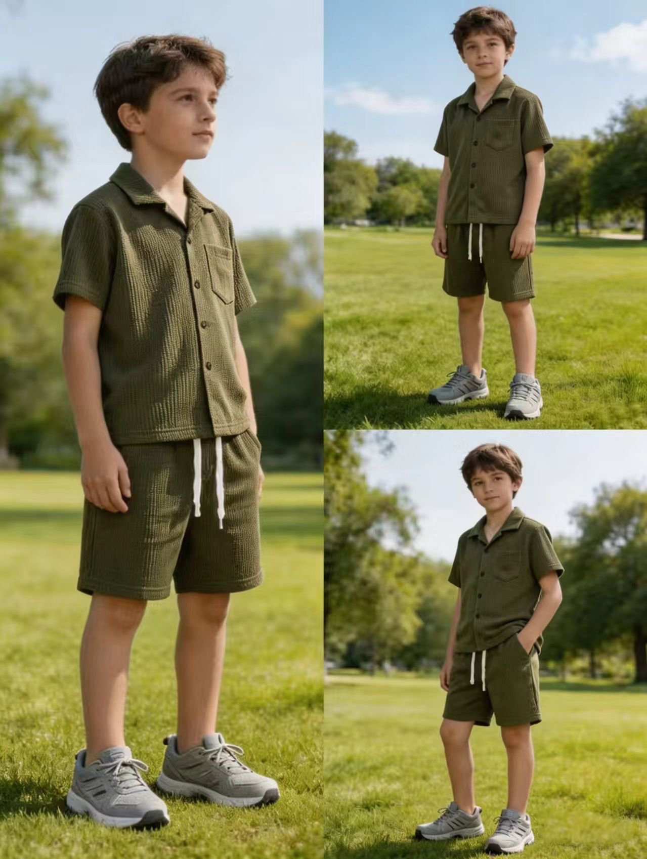 Heyisenlin, a wholesale shirt manufacturer specializing in clothing sets, is committed to providing high-quality children’s trendy T-shirt sets and OEM customization services to wholesalers worldwide. Style No.: 25X-14 features a comfortable and breathable fabric design with a simple and trendy cut, suitable for both everyday casual wear and bulk purchasing and brand customization by brands.