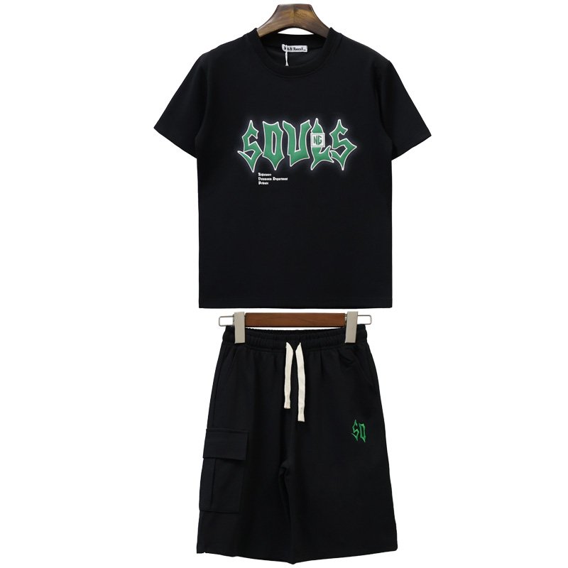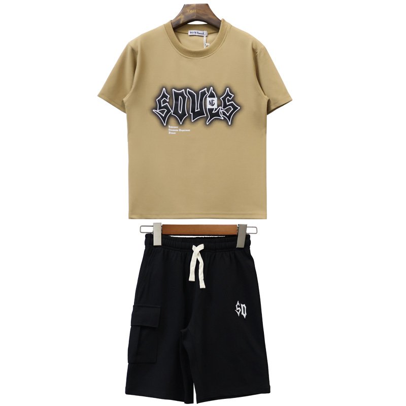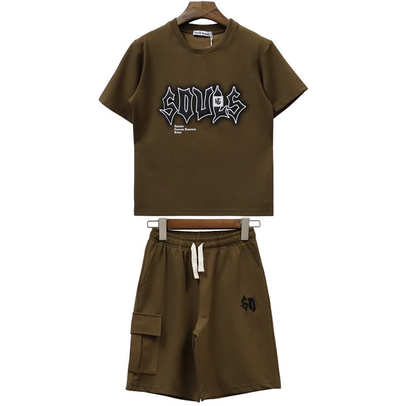 M-013# features a matching set design: a crew neck short-sleeved T-shirt and elastic-waist casual shorts. The overall proportions are harmonious, making it convenient for retail sales as a set.