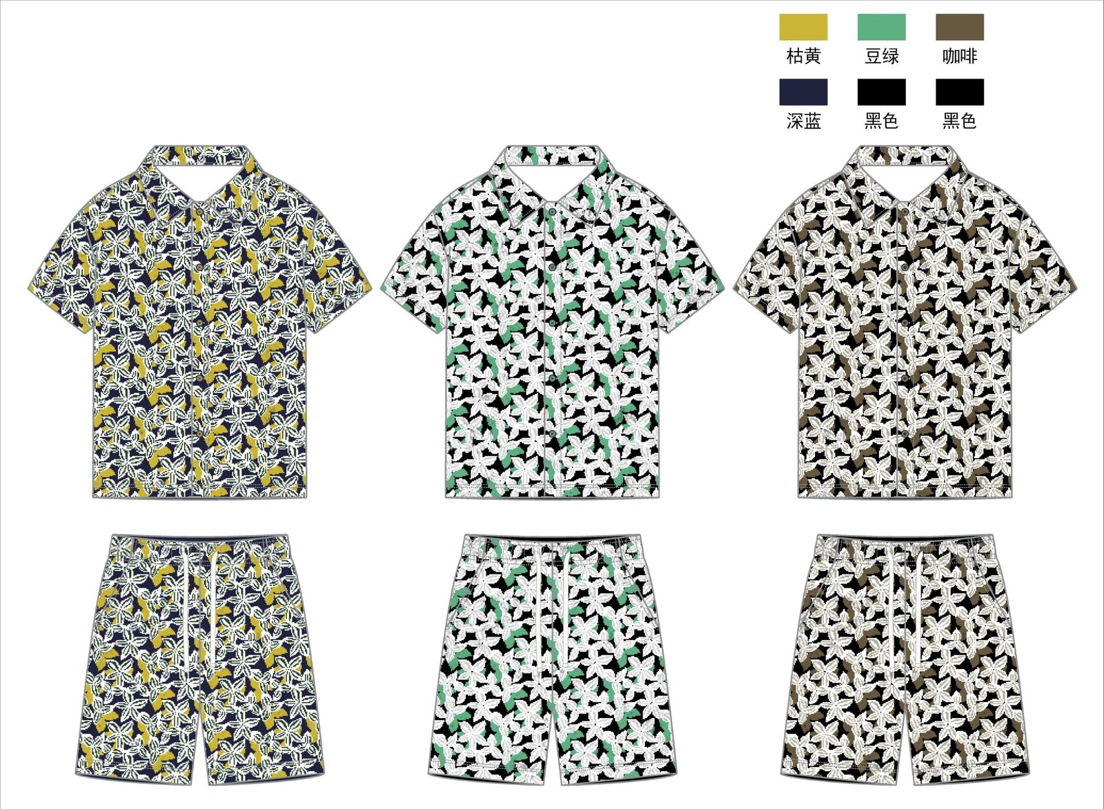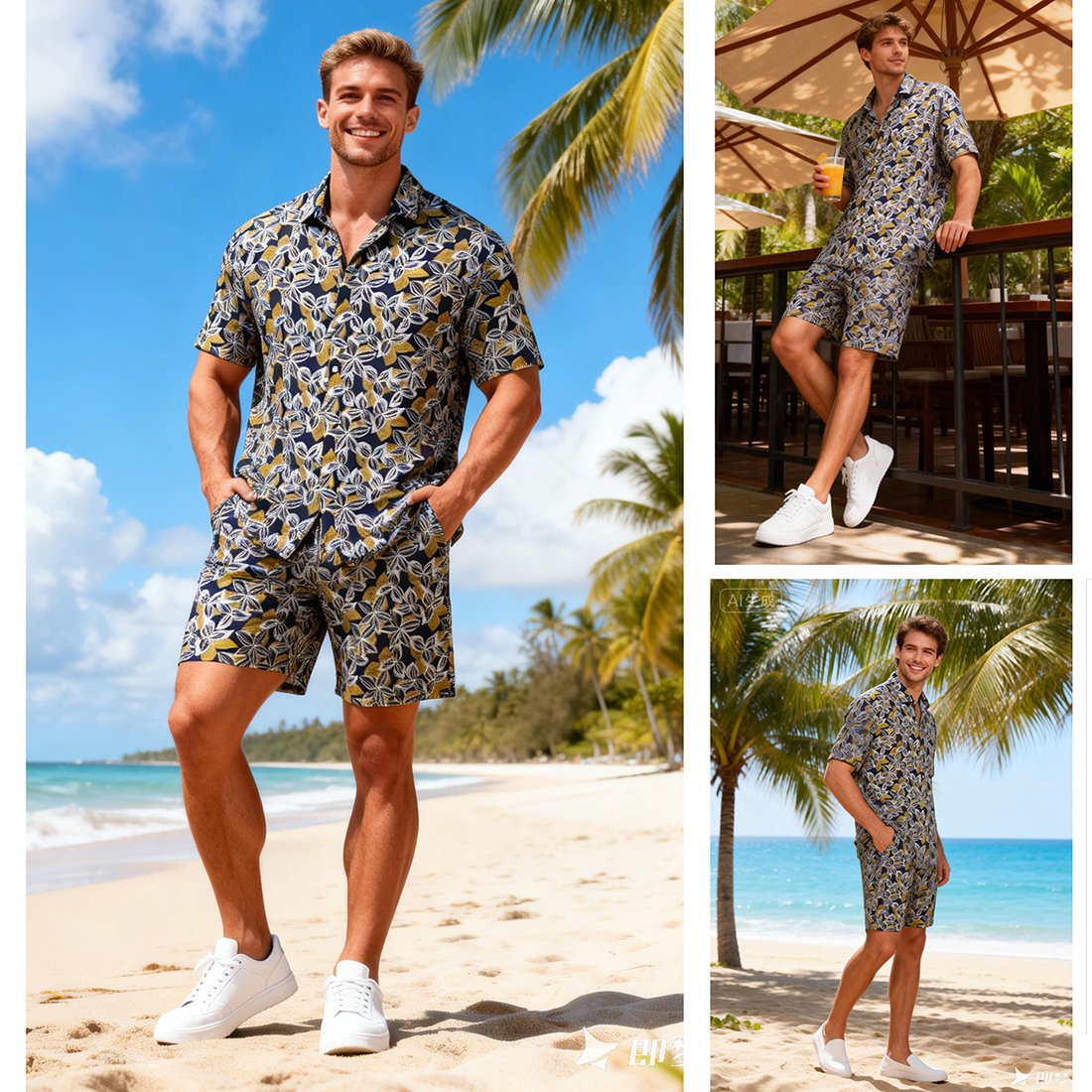 If you’re looking for a trendy T-shirt set that combines style, comfort, and wholesale/customization flexibility, this adult two-piece set is an ideal choice. Featuring a tropical botanical print, the set blends a tropical island vacation vibe with urban casual style. The short-sleeved collared top is paired with matching printed shorts, offering a relaxed and comfortable fit that’s both fashionable and comfortable—perfect for summer casual wear, vacations, brand events, or e-commerce bestsellers.